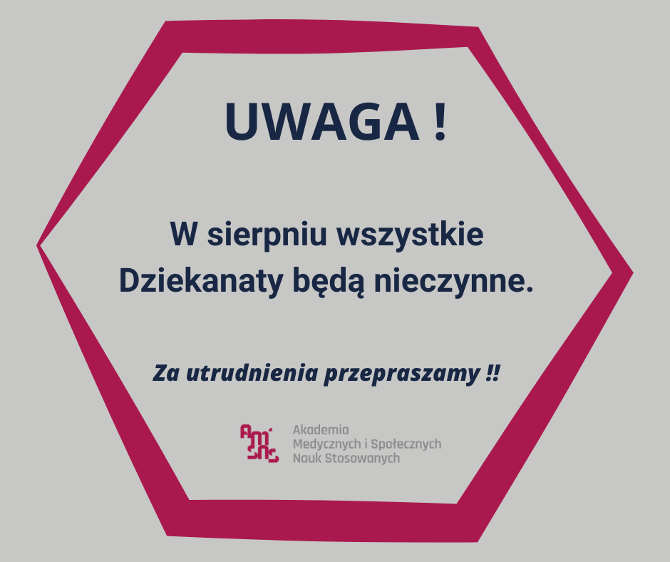 Ważne: Dziekanaty nieczynne w sierpniuStrona Główna / Główne aktualności / Ważne: Dziekanaty nieczynne w sierpniu Data publikacji:25.07.2024