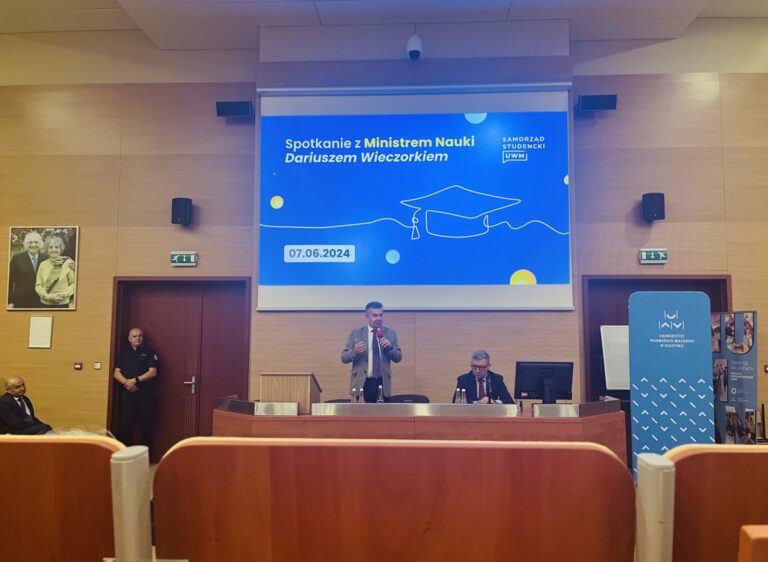 Zdjęcia: strona https://www.gov.pl/web/nauka/minister-dariusz-wieczorek-na-uniwersytecie-warminsko-mazurskim-zalezy-nam-na-wspolpracy-opartej-na-zrozumieniu-i-otwartosci