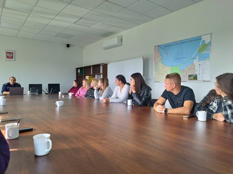 Gości powitał st. chor. sztab. SG Grzegorz Orpik, koordynator referatu zamiejscowego służb morskich i koordynacji działań KD SG. Podczas spotkania studenci poznali misję i główne zadania Straży Granicznej, strukturę organizacyjną formacji oraz zasady współpracy z innymi służbami. Omówiono także najczęstsze akcje podejmowane na wodzie oraz procedurę kwalifikacyjną do służby.