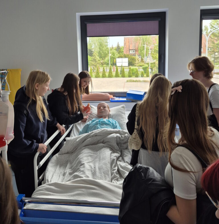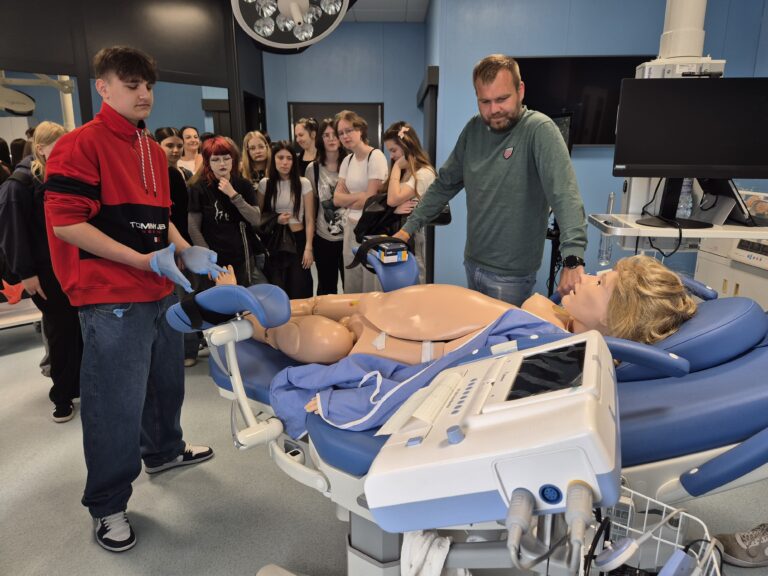Po części teoretycznej uczniowie mieli okazję odwiedzić Centrum Dydaktyki i Symulacji Medycznej, gdzie mogli zobaczyć, jak nowoczesna technologia wspiera proces kształcenia studentów kierunków medycznych.