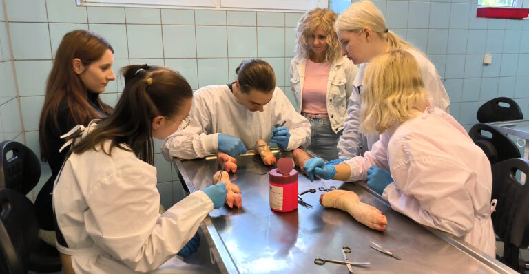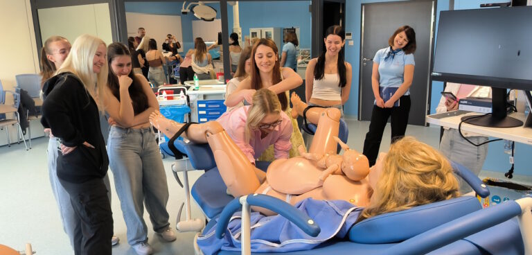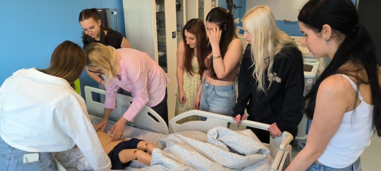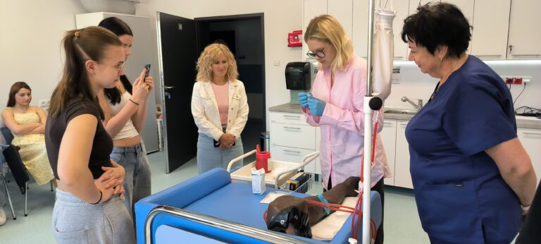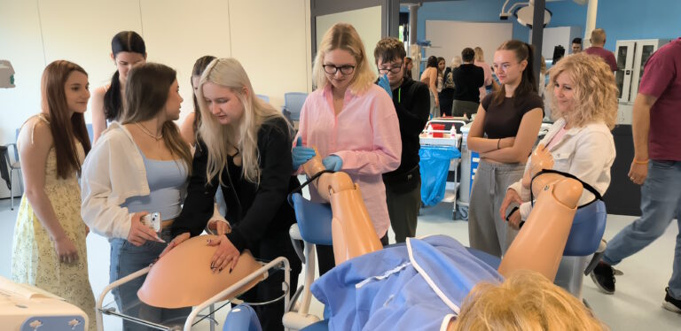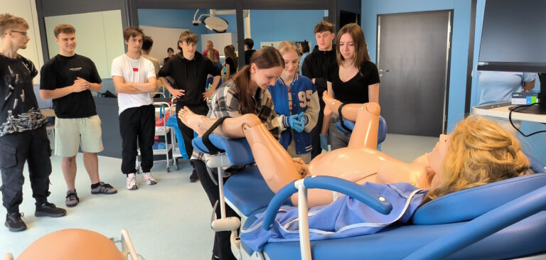 W programie wizyty znalazły się: warsztaty szycia chirurgicznego, zajęcia z zakresu pielęgniarstwa, prezentacja oferty edukacyjnej AMiSNS oraz zwiedzanie nowoczesnego Centrum Dydaktyki i Symulacji Medycznej, którego kulminacyjnym punktem był pokaz porodu w warunkach symulacyjnych.