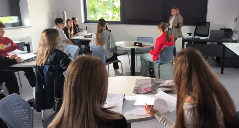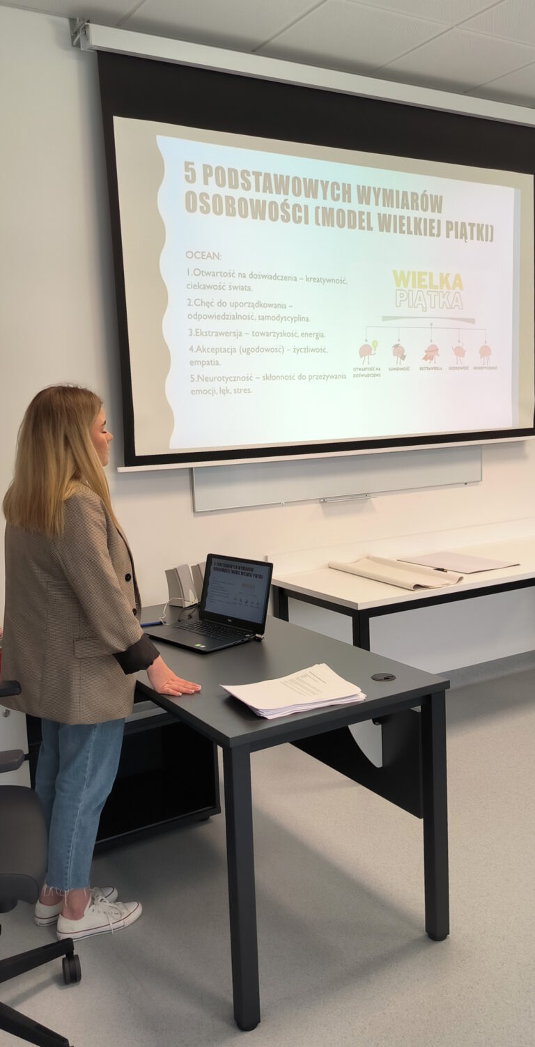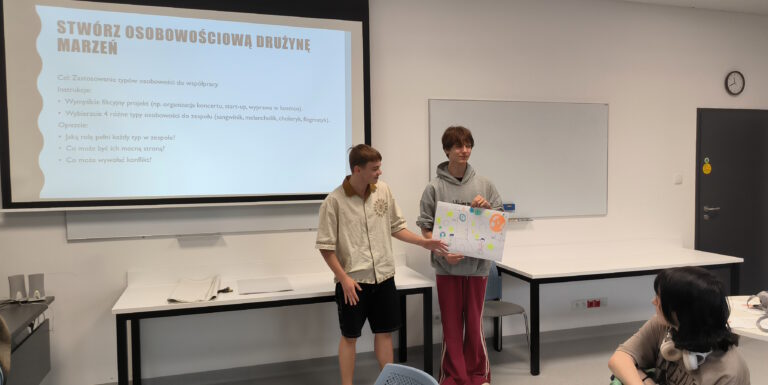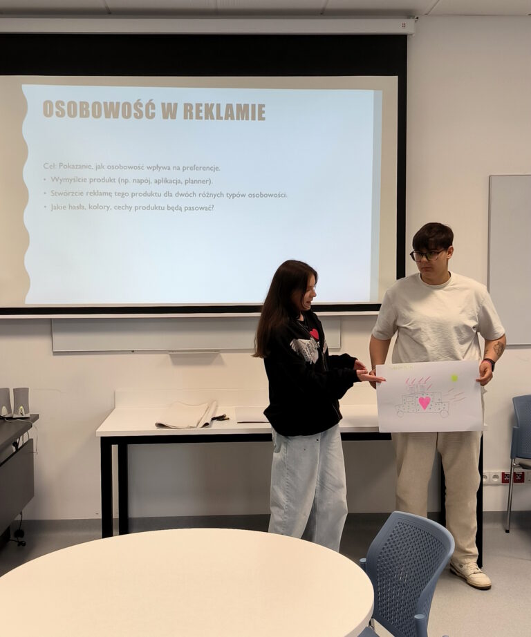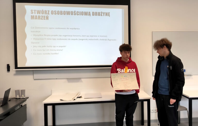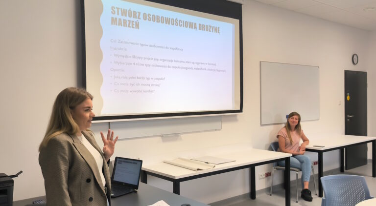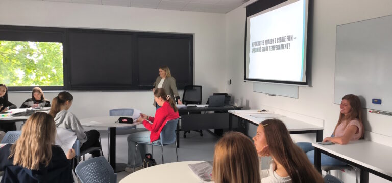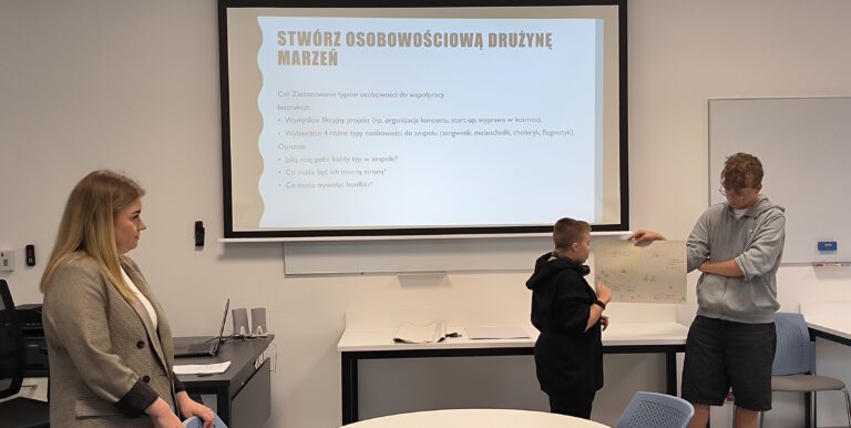 Celem wizyty było przybliżenie młodzieży zagadnień związanych z psychologią oraz nowoczesnymi metodami kształcenia stosowanymi w AMiSNS. Uczniowie wzięli udział w warsztacie pt. „Typy osobowości – czyli dlaczego każdy jest inny? I dlaczego to jest super?”, prowadzonym przez studentkę psychologii pod opieką merytoryczną dr Magdaleny Połom, koordynatorki kierunku Psychologia. Zajęcia miały formę interaktywną i były okazją do refleksji nad różnorodnością osobowości oraz budowaniem samoświadomości i zrozumienia dla innych.