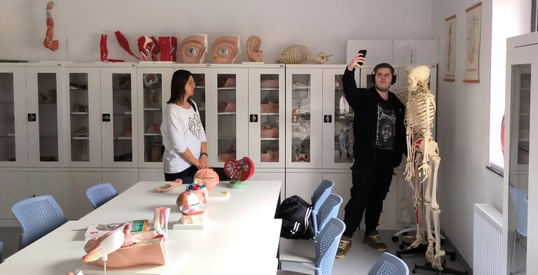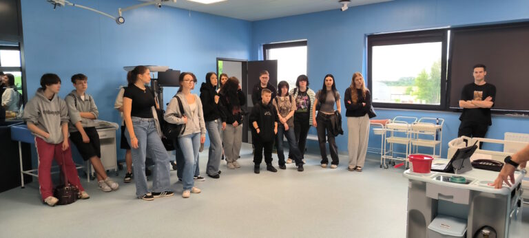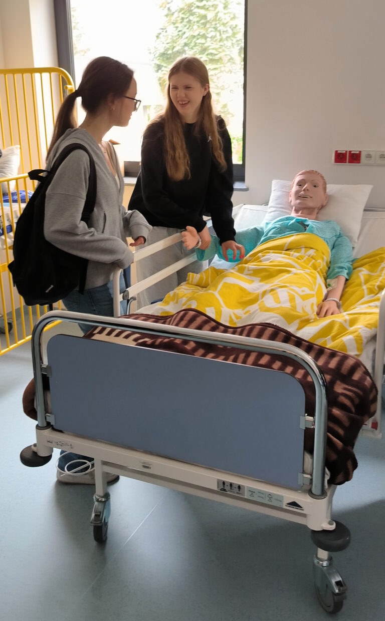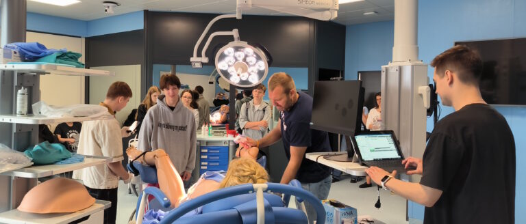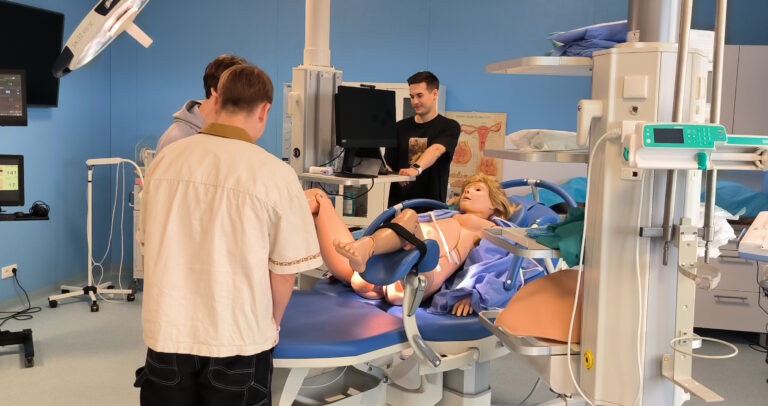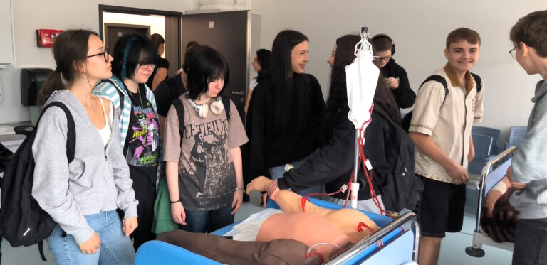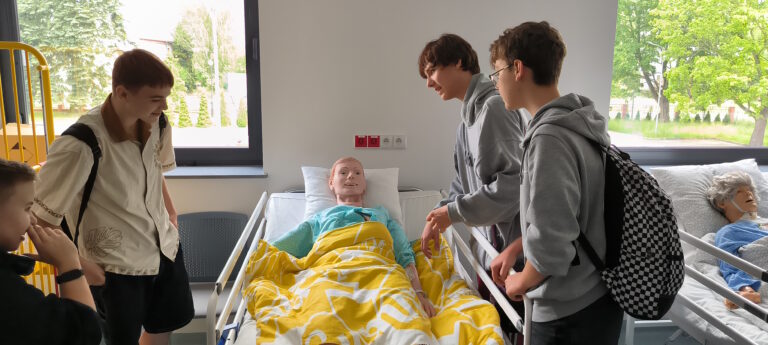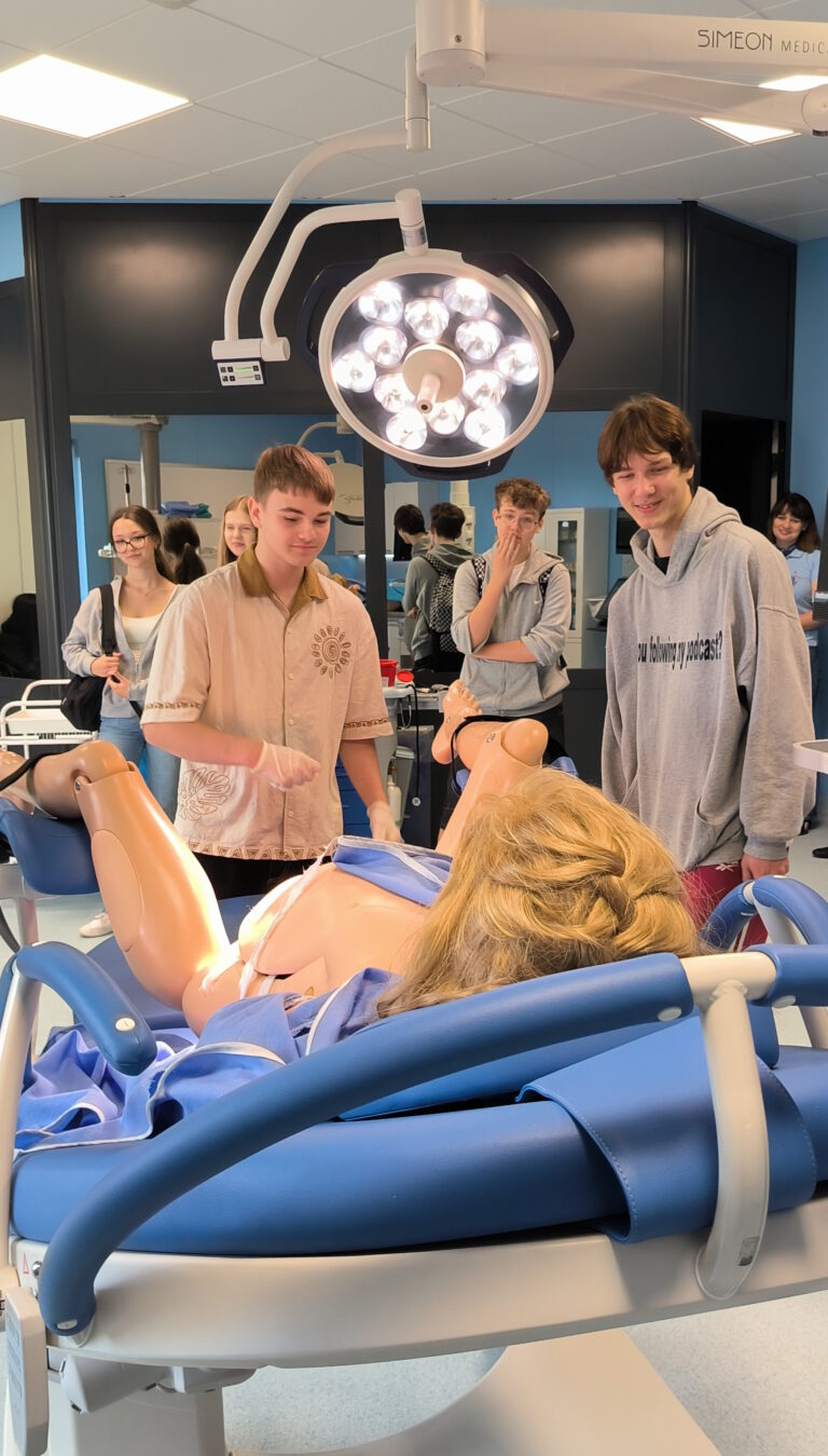 W programie wizyty znalazło się również zwiedzanie Centrum Dydaktyki i Symulacji, gdzie uczniowie uczestniczyli w pokazie symulacji porodu. Była to niepowtarzalna okazja do zapoznania się z realiami kształcenia medycznego przy użyciu nowoczesnych technologii i symulacji medycznych.