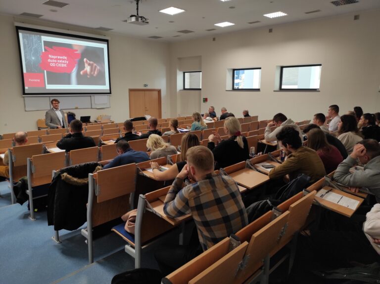 Studenci mieli również możliwość zagrania w aplikacji Score Hunter, będącą platformą edukacyjną przygotowaną przez BIK. Uczestnikom z najwyższymi wynikami prelegent wręczył nagrody.