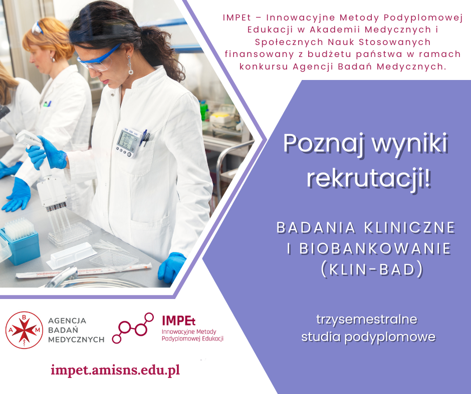 Wyniki rekrutacji na bezpłatne studia podyplomowe Badania kliniczne i biobankowanie (KLIN-BAD)