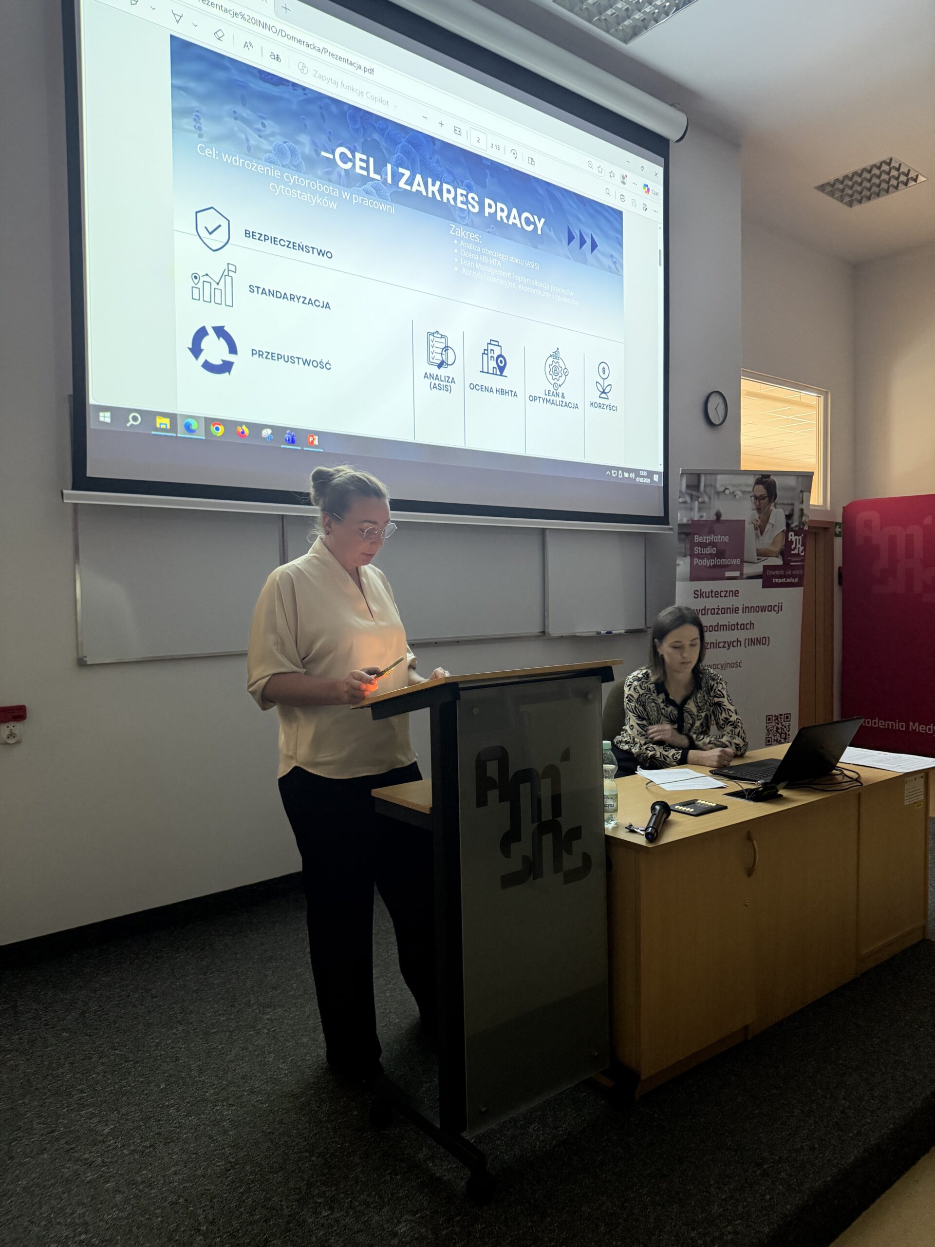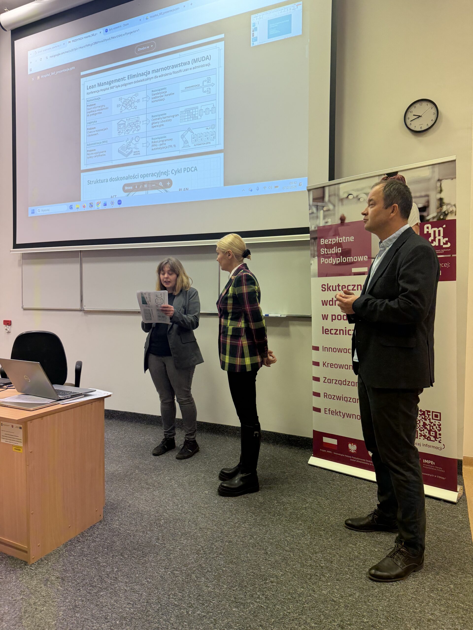 7 marca 2026 r. odbył się stacjonarny zjazd egzaminacyjny, który zwieńczył pierwszą edycję bezpłatnych  studiów podyplomowych „Skuteczne wdrażanie innowacji w podmiotach leczniczych (INNO)”. W ramach których uczestnicy przez cały rok rozwijali kompetencje związane z projektowaniem, oceną i wdrażaniem innowacji w systemie ochrony zdrowia.