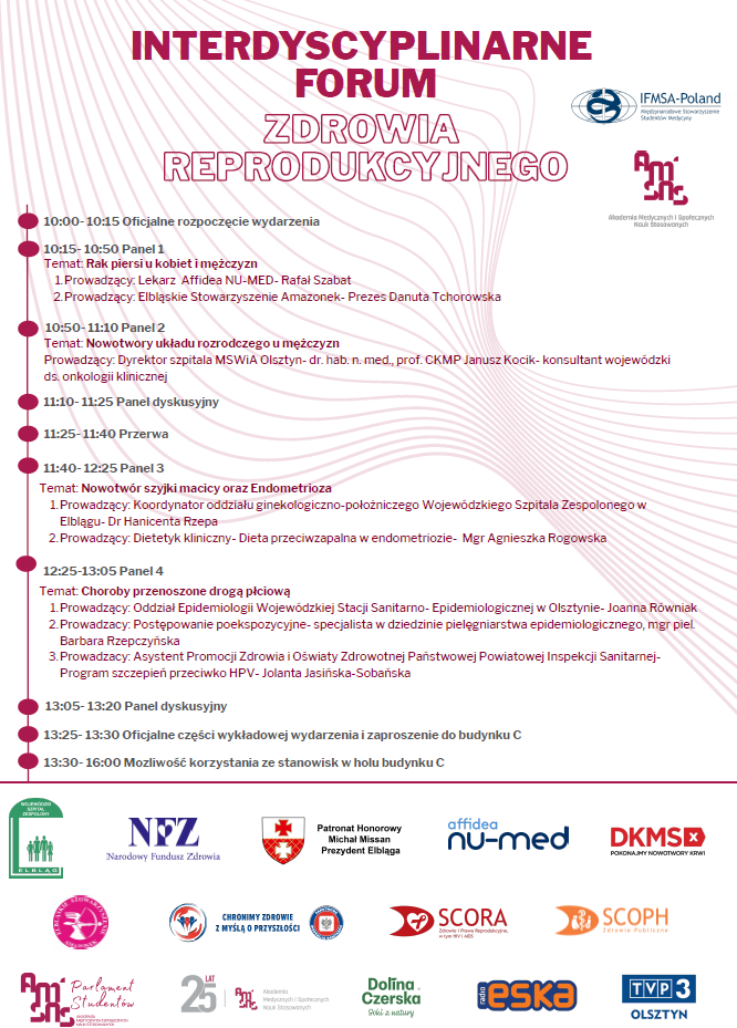 Już 14 marca 2026 r. (sobota) zapraszamy wszystkich studentów, pracowników oraz osoby zainteresowane tematyką zdrowia do udziału w pierwszym Interdyscyplinarnym Forum Zdrowia Reprodukcyjnego, organizowanym we współpracy z IFMSA-Poland.