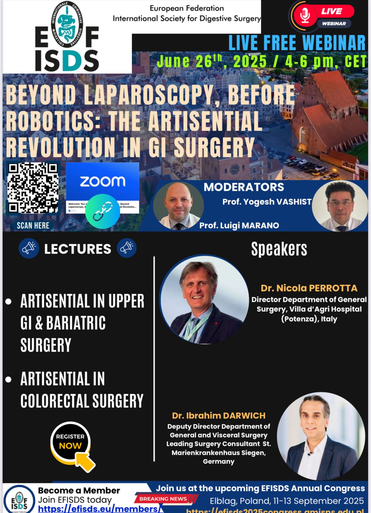 Akademia Medycznych i Społecznych Nauk Stosowanych w Elblągu serdecznie zaprasza studentów kierunków medycznych oraz wszystkie osoby zainteresowane innowacjami w medycynie do udziału w międzynarodowym webinarze pt. Beyond Laparoscopy, Before Robotics: The ArtiSential Revolution in GI Surgery, poświęconym przełomowym technologiom w chirurgii przewodu pokarmowego.