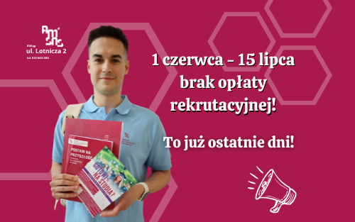Do 15 lipca 2025 r. nie pobieramy opłaty rekrutacyjnej. Skorzystaj z promocji i dopełnij formalności rekrutacyjnych.