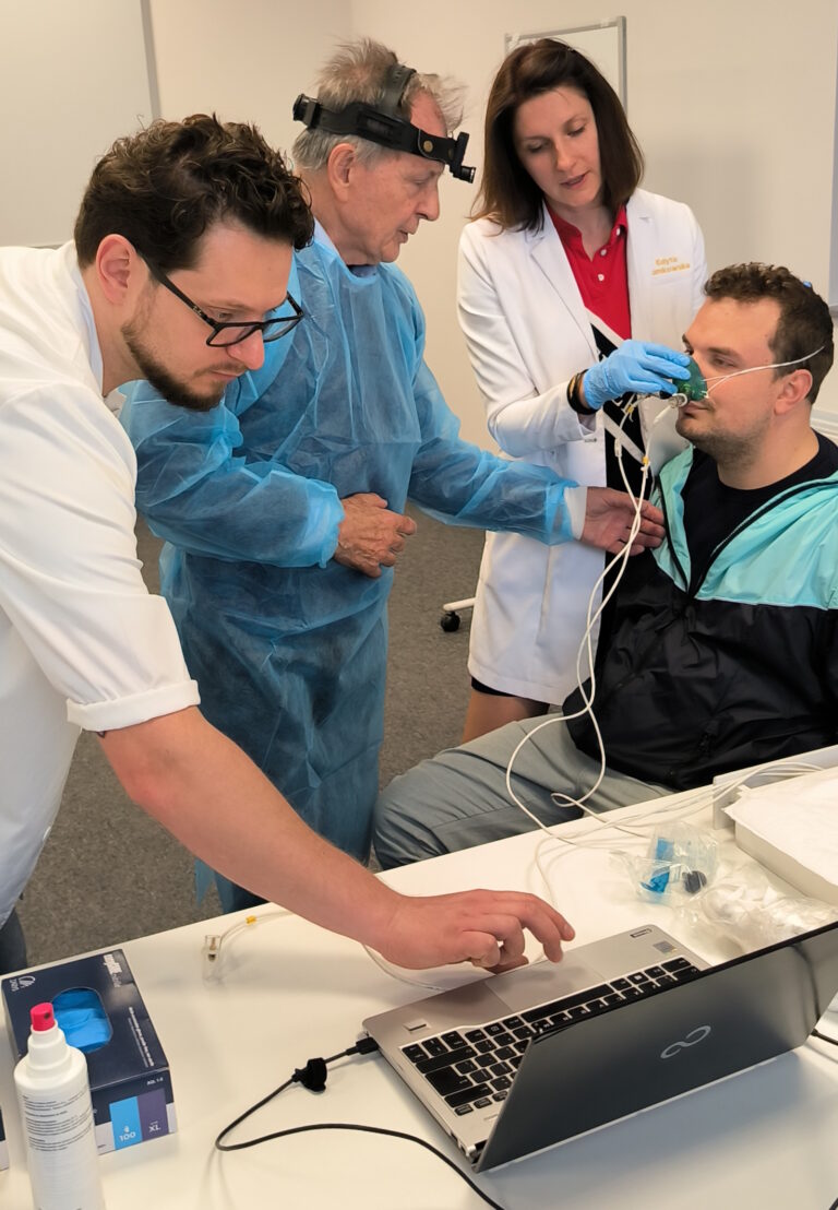 O godzinie 16:00 odbył się oficjalny briefing prasowy z udziałem przedstawicieli AMiSNS, dyrektorów elbląskich szpitali oraz partnerów wydarzenia. Spotkanie podkreśliło znaczenie współpracy instytucji samorządowych, medycznych i akademickich w promowaniu zdrowia publicznego. Pani Monika Kurpanik, Dyrektor Departamentu Zdrowia, otworzyła spotkanie, zwracając uwagę na rolę profilaktyki i motyw przewodni – „Elbląskie Drogi Oddechowe”. W imieniu Wojewódzkiego Szpitala Zespolonego wypowiedziała się Pani Hanna Laska-Kleinszmidt, podkreślając wkład placówki w działania profilaktyczne. Z kolei Pani Małgorzata Adamowicz, Wiceprzewodnicząca Rady Miejskiej, zaakcentowała wartość lokalnych inicjatyw zdrowotnych. Dr hab. n. med. Beata Januszko-Giergielewicz, prof. AMiSNS, specjalistka nefrologii i transplantologii klinicznej, podkreśliła znaczenie nowoczesnych form komunikacji w promowaniu medycyny opartej na empatii i odpowiedzialności oraz przybliżyła zebranym aplikację „e-przeszczep”. Pan Grzegorz Perzyński, prezes Fundacji LIVERstrong, podzielił się swoją historią transplantacji, zachęcając do podejmowania świadomych decyzji o dawstwie narządów. Spotkanie zamknęła dr Adrianna Korczakowska, szpitalny koordynator transplantacyjny Wojewódzkiego Szpitala Zespolonego w Elblągu, przybliżając rolę zespołów medycznych w procedurach przeszczepowych.