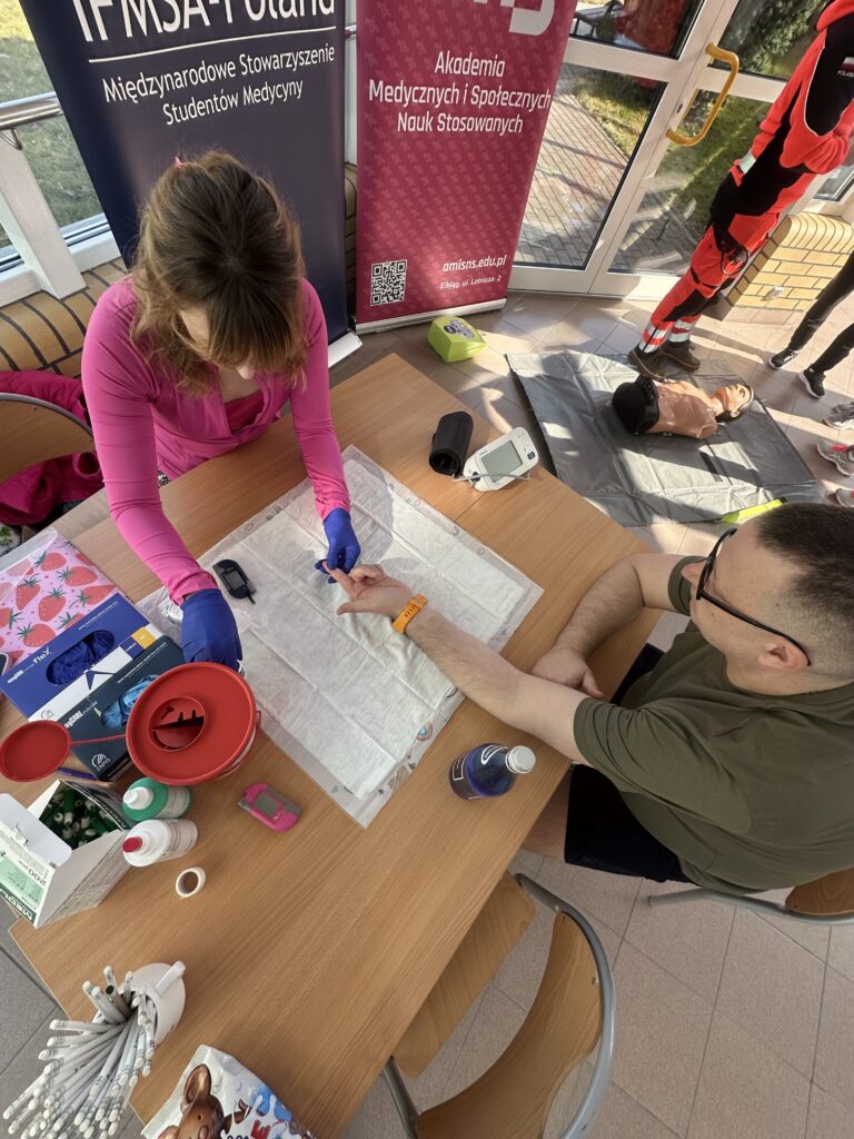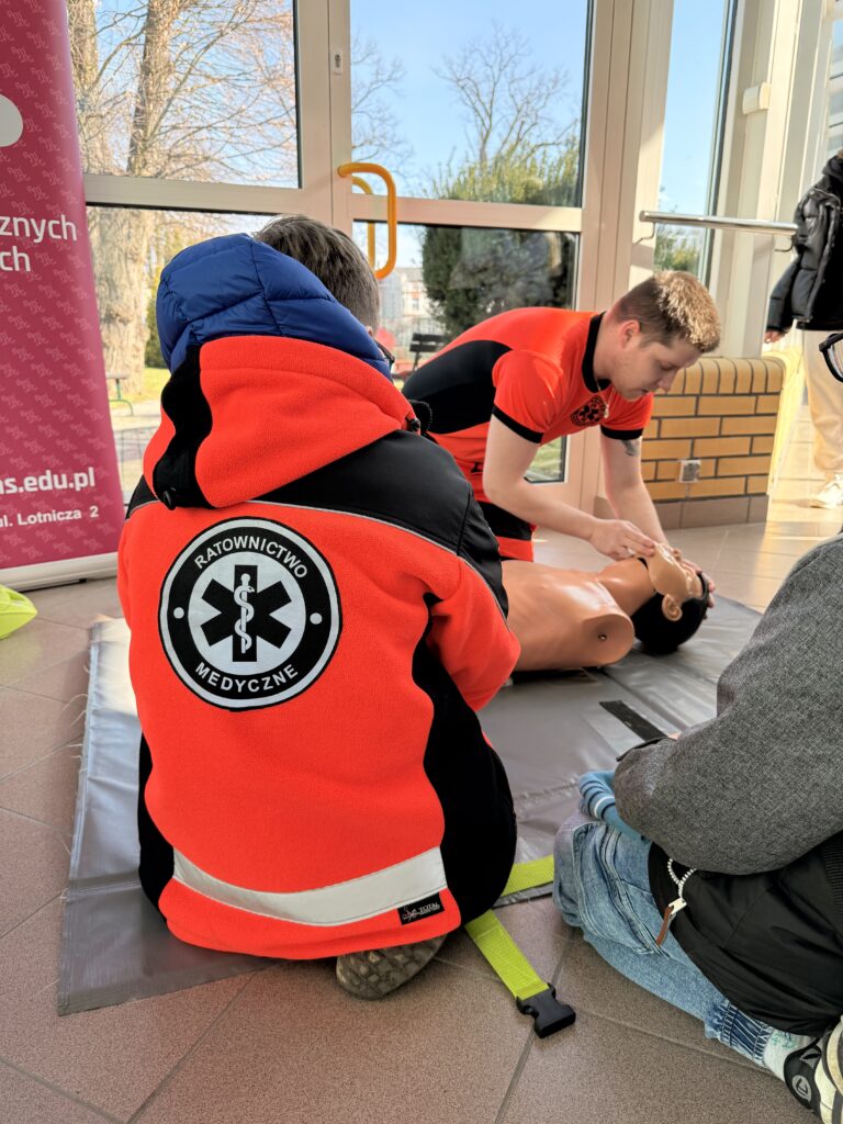 Uczestnicy turnieju mogli skorzystać z pomiarów podstawowych parametrów zdrowotnych, porozmawiać o profilaktyce i uzyskać wskazówki dotyczące dbania o zdrowie na co dzień. Dużym zainteresowaniem cieszyły się także praktyczne warsztaty z pierwszej pomocy, które poprowadził Przemysław Bęben z uczelnianego Koła „Medycyny Ratunkowej”. Uczestnicy chętnie ćwiczyli podstawowe umiejętności i zadawali pytania.