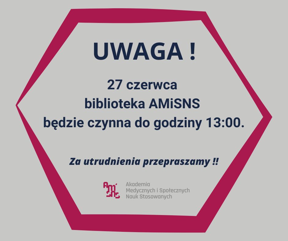 Zmiana godzin pracy Biblioteki AMiSNSStrona Główna / Główne aktualności / Zmiana godzin pracy Biblioteki AMiSNS Data publikacji:27.06.202527.06.2025