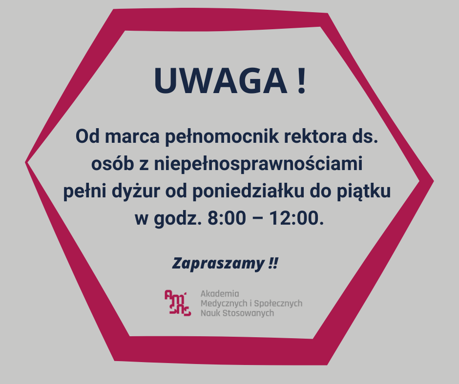 Zmiana godzin pracy pełnomocnika rektora ds. osób z niepełnosprawnościamiStrona Główna / Główne aktualności / Zmiana godzin pracy pełnomocnika rektora ds. osób z niepełnosprawnościami Data publikacji:07.03.202507.03.2025